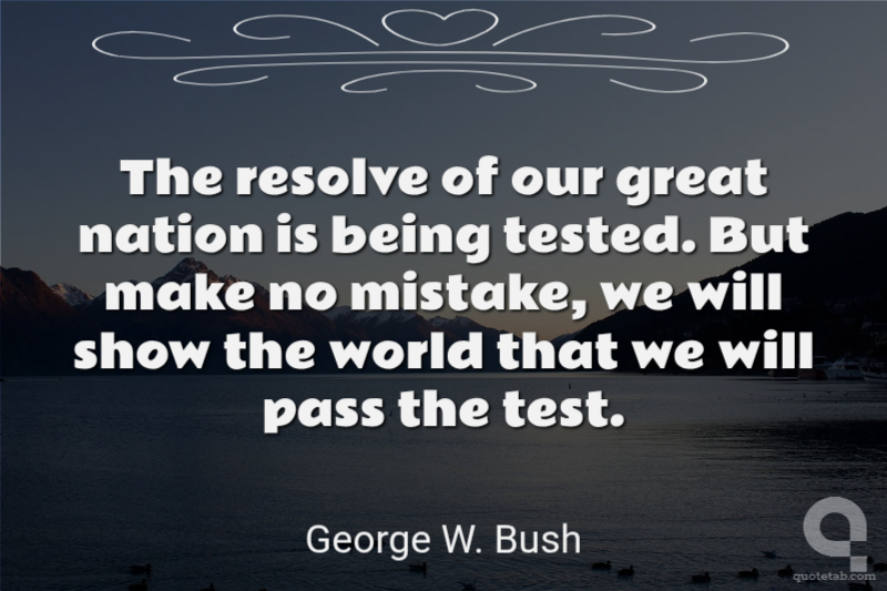 The resolve of our great nation is being tested. But make no mistake, we will show the world that we will pass the test.