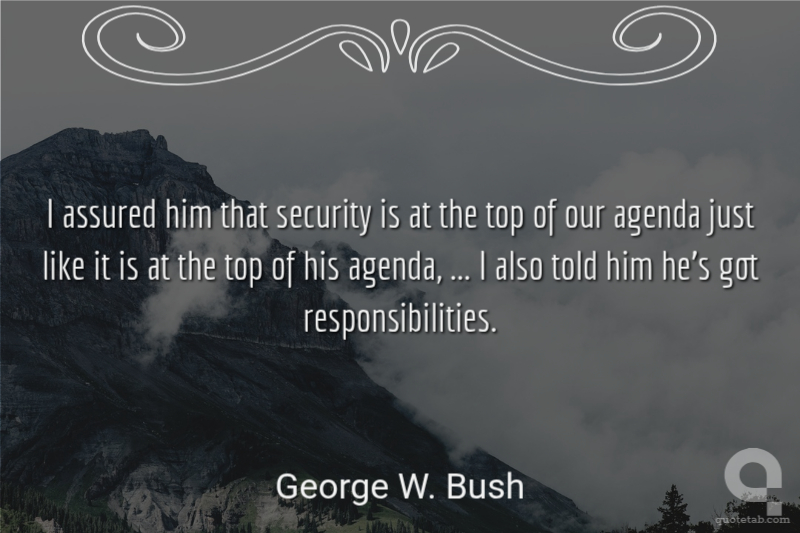 I assured him that security is at the top of our agenda just like it is at the top of his agenda, ... I also told him he's got responsibilities.