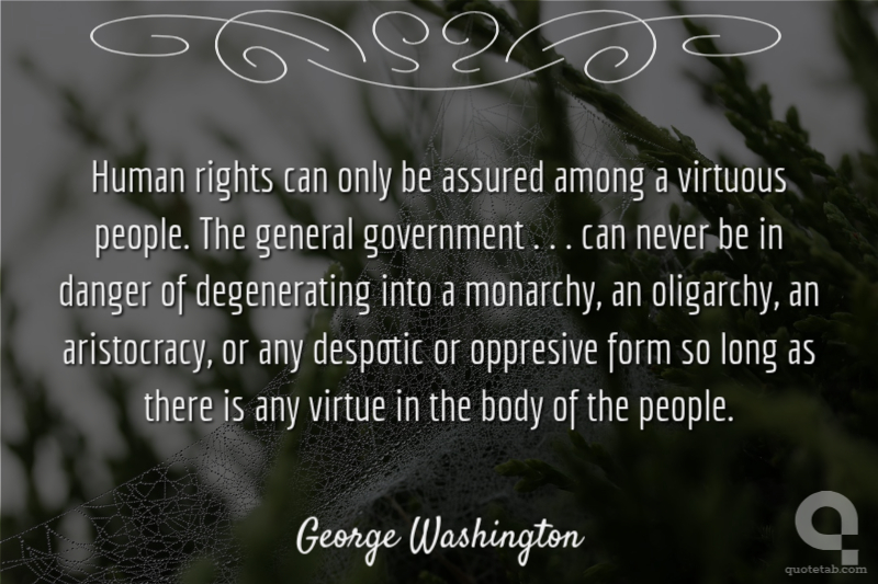 Human rights can only be assured among a virtuous people. The general government . . . can never be in danger of degenerating into a monarchy, an oligarchy, an aristocracy, or any despotic or oppresive form so long as there is any virtue in the body of the people.