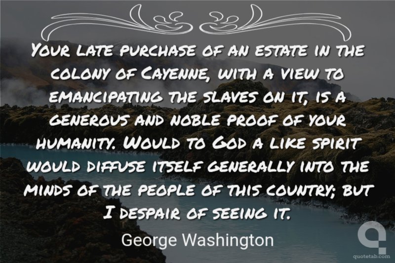 Your late purchase of an estate in the colony of Cayenne, with a view to emancipating the slaves on it, is a generous and noble proof of your humanity. Would to God a like spirit would diffuse itself generally into the minds of the people of this country; but I despair of seeing it.