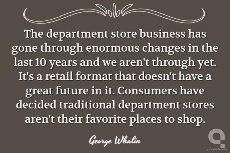 The department store business has gone through enormous changes in the last 10 years and we aren't through yet. It's a retail format that doesn't have a great future in it. Consumers have decided traditional department stores aren't their favorite places to shop.