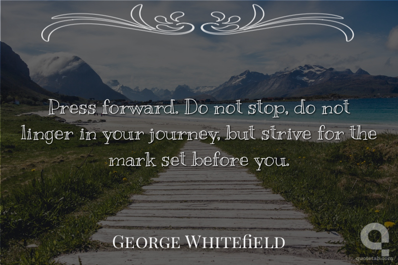 Press forward. Do not stop, do not linger in your journey, but strive for the mark set before you.