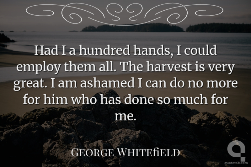Had I a hundred hands, I could employ them all. The harvest is very great. I am ashamed I can do no more for him who has done so much for me.