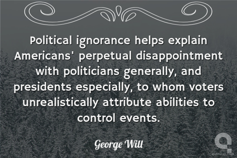 Political ignorance helps explain Americans' perpetual disappointment with politicians generally, and presidents especially, to whom voters unrealistically attribute abilities to control events.