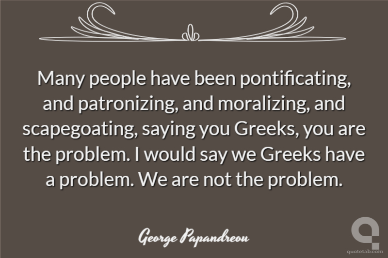 Many people have been pontificating, and patronizing, and moralizing, and scapegoating, saying you Greeks, you are the problem. I would say we Greeks have a problem. We are not the problem.