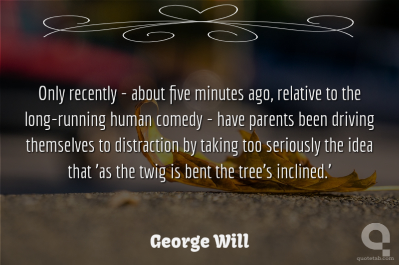 Only recently - about five minutes ago, relative to the long-running human comedy - have parents been driving themselves to distraction by taking too seriously the idea that 'as the twig is bent the tree's inclined.'
