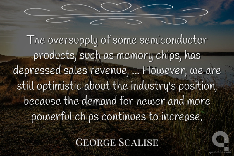 The oversupply of some semiconductor products, such as memory chips, has depressed sales revenue, ... However, we are still optimistic about the industry's position, because the demand for newer and more powerful chips continues to increase.
