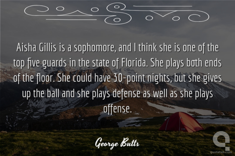 Aisha Gillis is a sophomore, and I think she is one of the top five guards in the state of Florida. She plays both ends of the floor. She could have 30-point nights, but she gives up the ball and she plays defense as well as she plays offense.