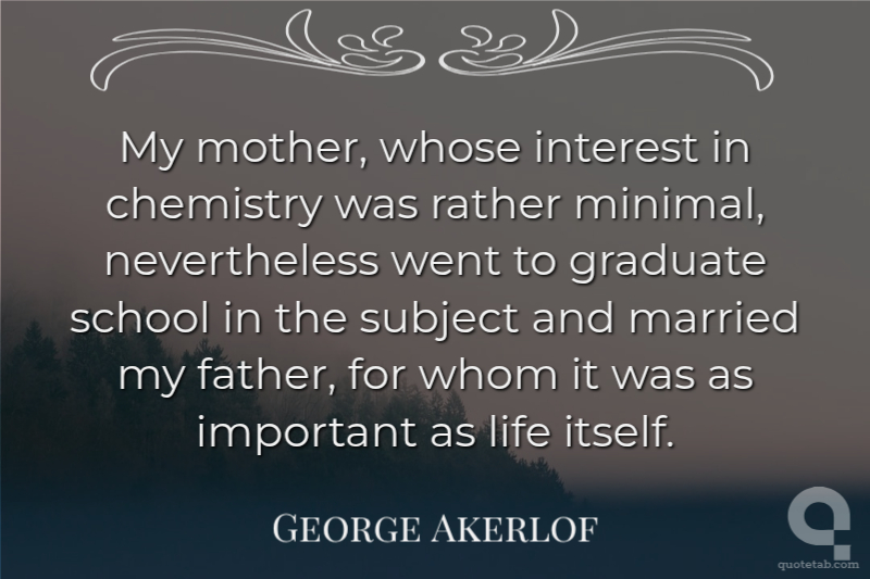 My mother, whose interest in chemistry was rather minimal, nevertheless went to graduate school in the subject and married my father, for whom it was as important as life itself.