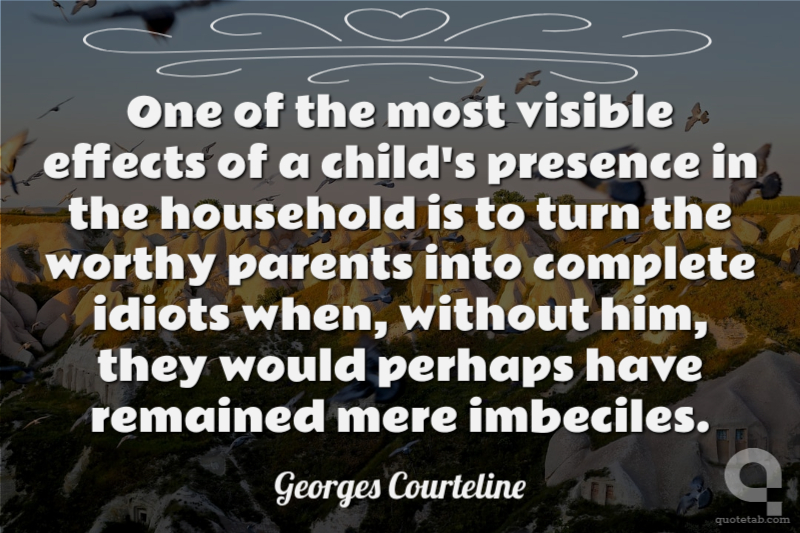 One of the most visible effects of a child's presence in the household is to turn the worthy parents into complete idiots when, without him, they would perhaps have remained mere imbeciles.