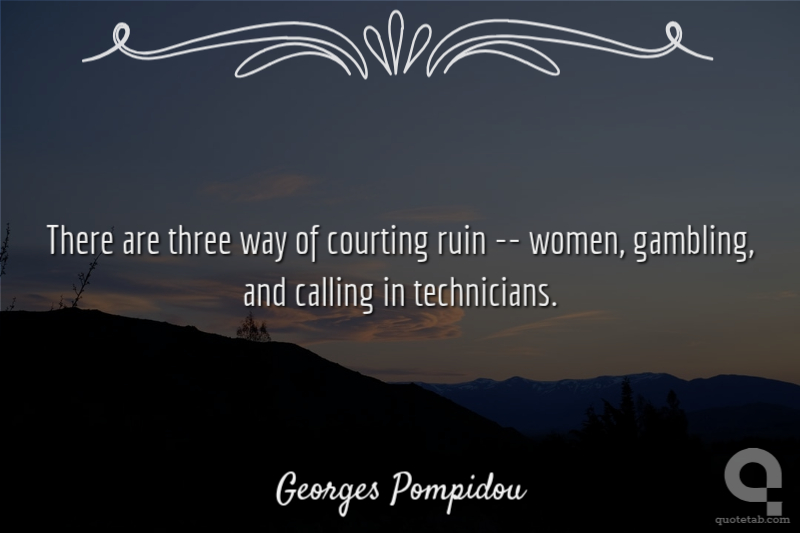 There are three roads to ruin; women, gambling and technicians. The most pleasant is with women, the quickest is with gambling, but the surest is with technicians.