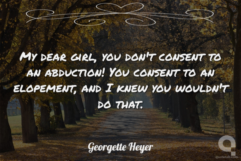My dear girl, you don't consent to an abduction! You consent to an elopement, and I knew you wouldn't do that.