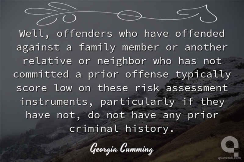 Well, offenders who have offended against a family member or another relative or neighbor who has not committed a prior offense typically score low on these risk assessment instruments, particularly if they have not, do not have any prior criminal history.