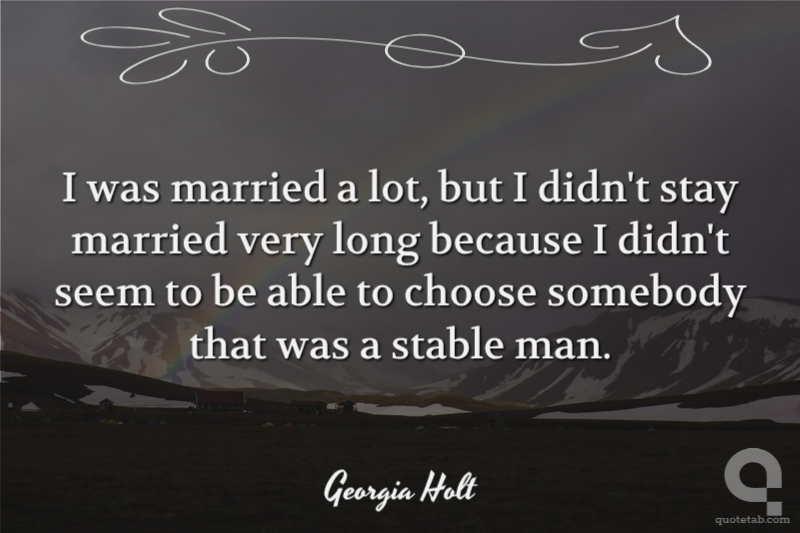 I was married a lot, but I didn't stay married very long because I didn't seem to be able to choose somebody that was a stable man.