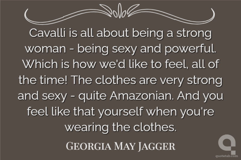Cavalli is all about being a strong woman - being sexy and powerful. Which is how we'd like to feel, all of the time! The clothes are very strong and sexy - quite Amazonian. And you feel like that yourself when you're wearing the clothes.