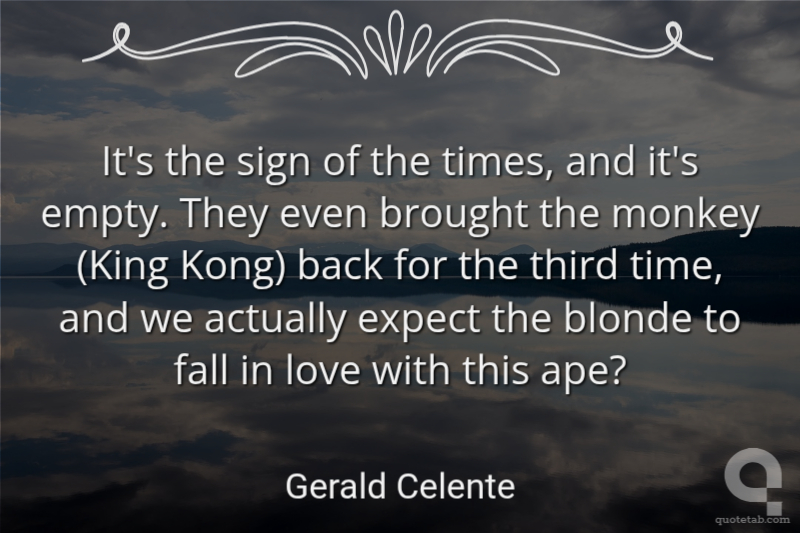 It's the sign of the times, and it's empty. They even brought the monkey (King Kong) back for the third time, and we actually expect the blonde to fall in love with this ape?