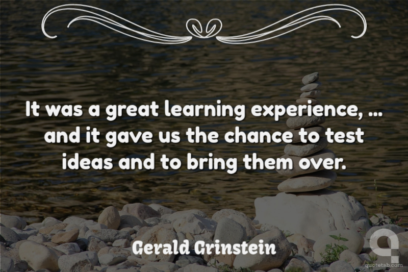 It was a great learning experience, ... and it gave us the chance to test ideas and to bring them over.