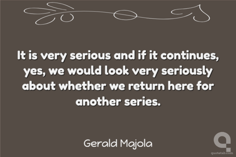 It is very serious and if it continues, yes, we would look very seriously about whether we return here for another series.