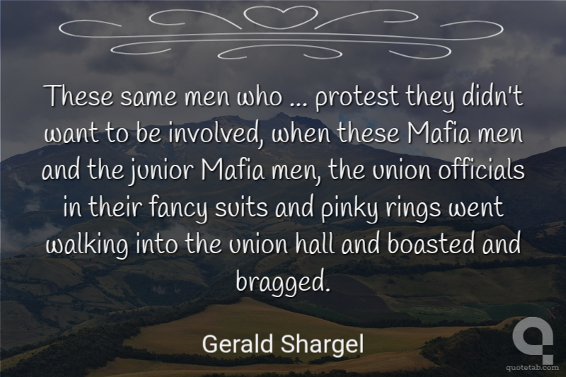 These same men who ... protest they didn't want to be involved, when these Mafia men and the junior Mafia men, the union officials in their fancy suits and pinky rings went walking into the union hall and boasted and bragged.