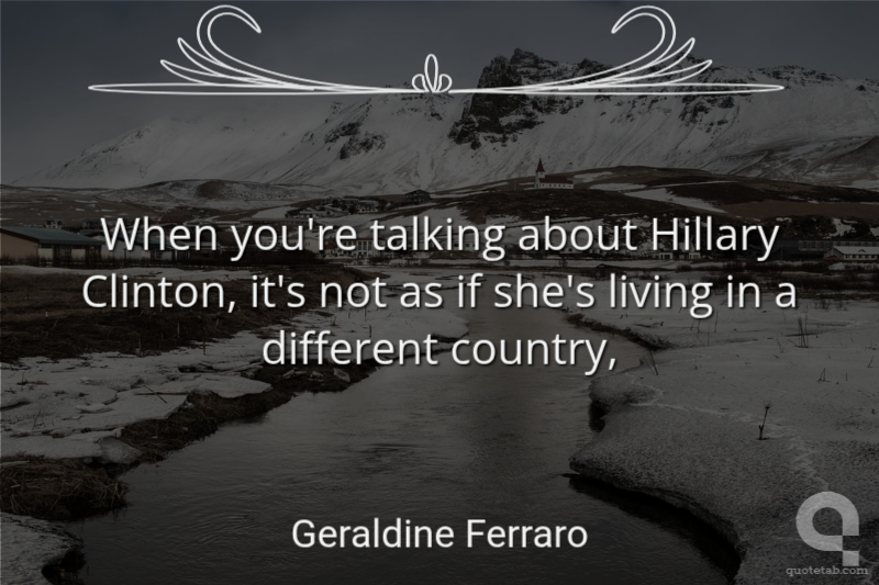 When you're talking about Hillary Clinton, it's not as if she's living in a different country,