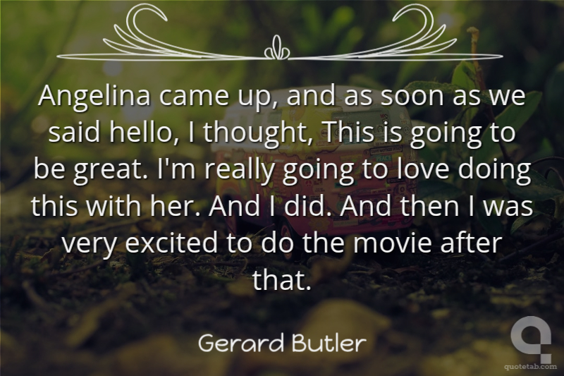 Angelina came up, and as soon as we said hello, I thought, This is going to be great. I'm really going to love doing this with her. And I did. And then I was very excited to do the movie after that.