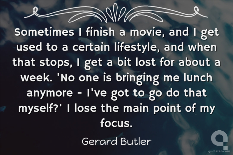 Sometimes I finish a movie, and I get used to a certain lifestyle, and when that stops, I get a bit lost for about a week. 'No one is bringing me lunch anymore - I've got to go do that myself?' I lose the main point of my focus.