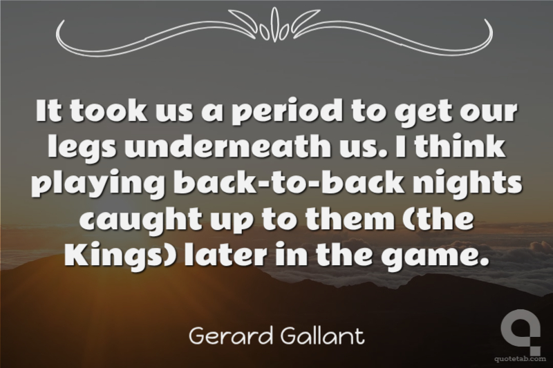 It took us a period to get our legs underneath us. I think playing back-to-back nights caught up to them (the Kings) later in the game.
