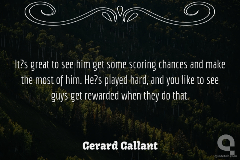 It?s great to see him get some scoring chances and make the most of him. He?s played hard, and you like to see guys get rewarded when they do that.