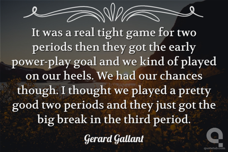 It was a real tight game for two periods then they got the early power-play goal and we kind of played on our heels. We had our chances though. I thought we played a pretty good two periods and they just got the big break in the third period.