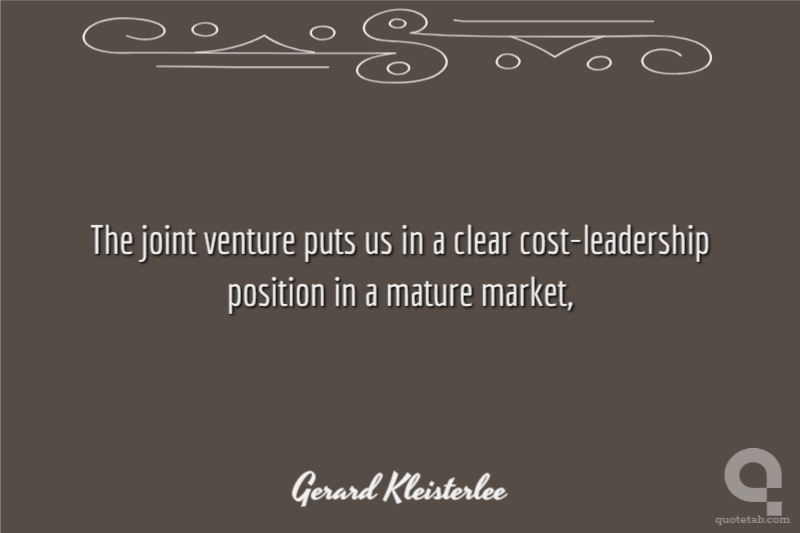 The joint venture puts us in a clear cost-leadership position in a mature market,