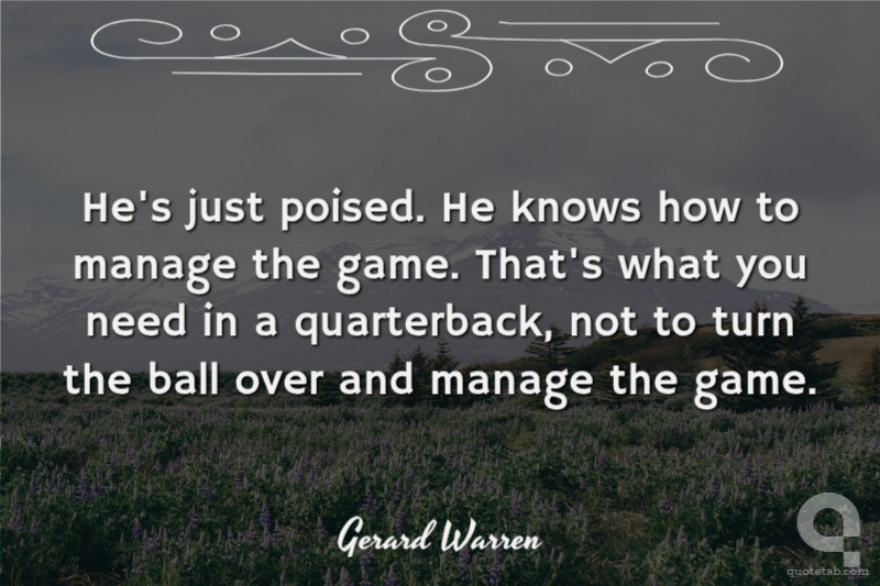 He's just poised. He knows how to manage the game. That's what you need in a quarterback, not to turn the ball over and manage the game.