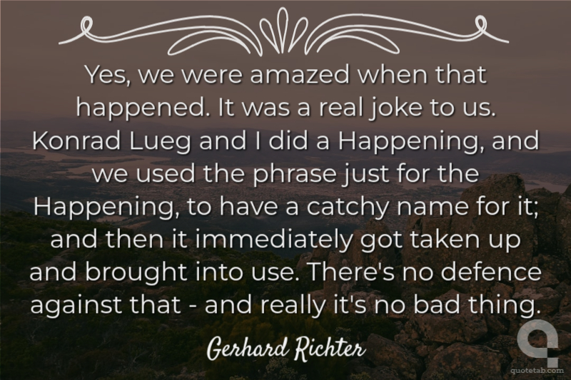 Yes, we were amazed when that happened. It was a real joke to us. Konrad Lueg and I did a Happening, and we used the phrase just for the Happening, to have a catchy name for it; and then it immediately got taken up and brought into use. There's no defence against that - and really it's no bad thing.