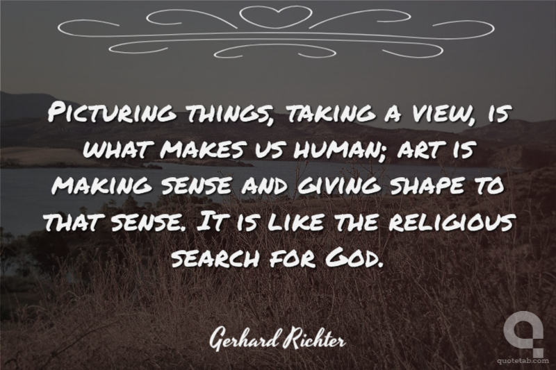 Picturing things, taking a view, is what makes us human; art is making sense and giving shape to that sense. It is like the religious search for God.