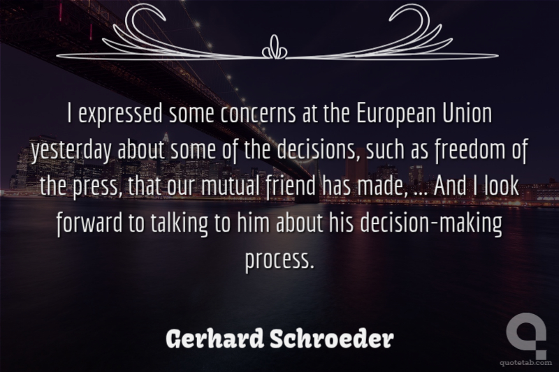 I expressed some concerns at the European Union yesterday about some of the decisions, such as freedom of the press, that our mutual friend has made, ... And I look forward to talking to him about his decision-making process.