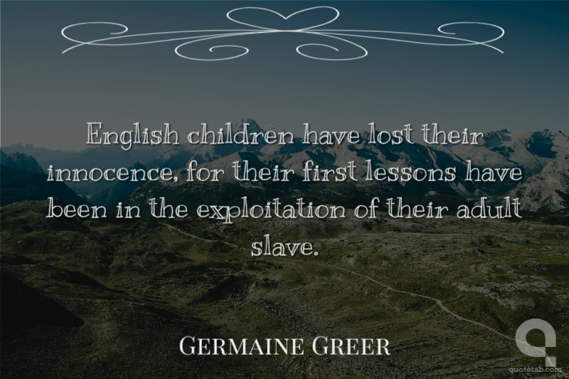 English children have lost their innocence, for their first lessons have been in the exploitation of their adult slave.