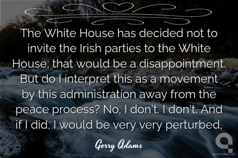 The White House has decided not to invite the Irish parties to the White House; that would be a disappointment. But do I interpret this as a movement by this administration away from the peace process? No, I don't. I don't. And if I did, I would be very very perturbed,