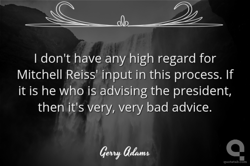 I don't have any high regard for Mitchell Reiss' input in this process. If it is he who is advising the president, then it's very, very bad advice.