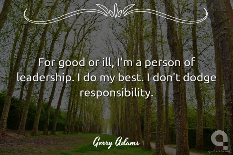 For good or ill, I'm a person of leadership. I do my best. I don't dodge responsibility.