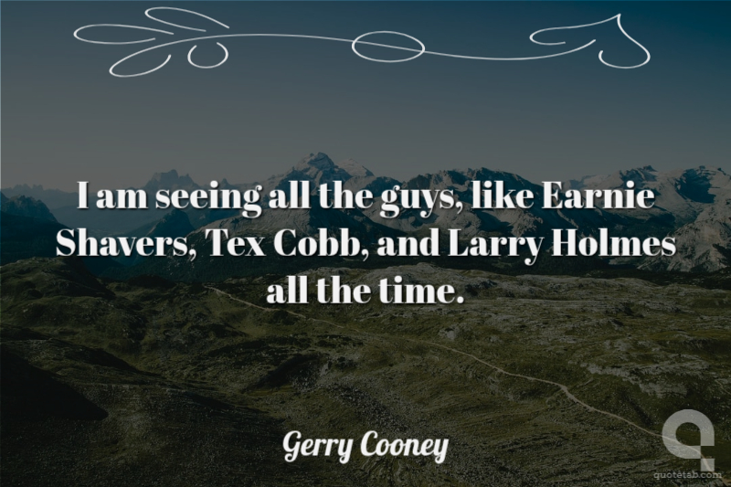 I am seeing all the guys, like Earnie Shavers, Tex Cobb, and Larry Holmes all the time.