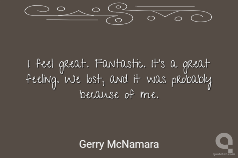 I feel great. Fantastic. It's a great feeling. We lost, and it was probably because of me.