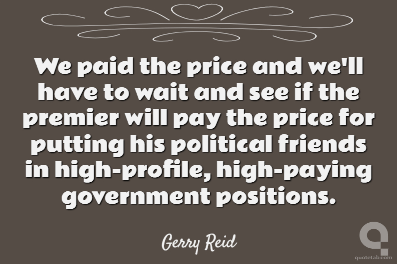 We paid the price and we'll have to wait and see if the premier will pay the price for putting his political friends in high-profile, high-paying government positions.