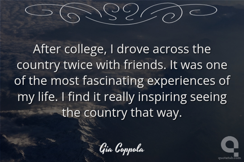 After college, I drove across the country twice with friends. It was one of the most fascinating experiences of my life. I find it really inspiring seeing the country that way.
