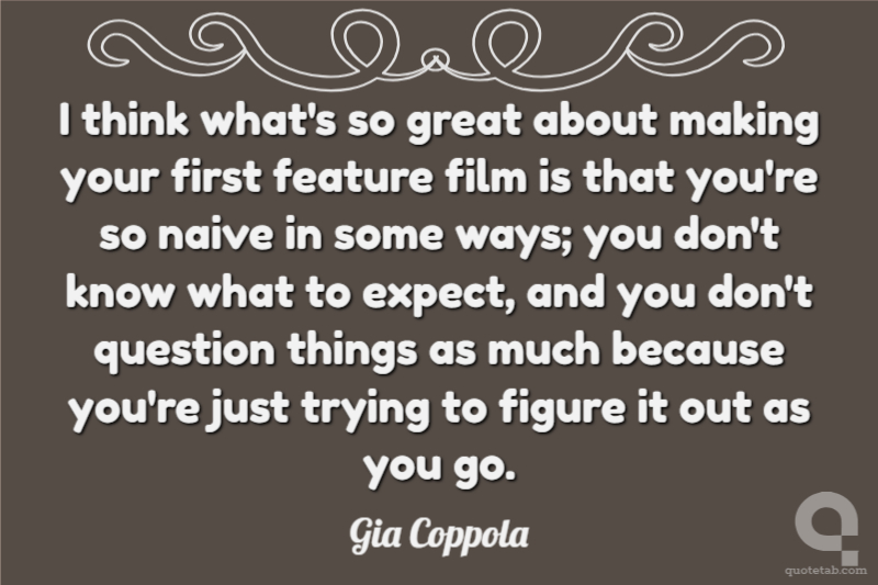 I think what's so great about making your first feature film is that you're so naive in some ways; you don't know what to expect, and you don't question things as much because you're just trying to figure it out as you go.