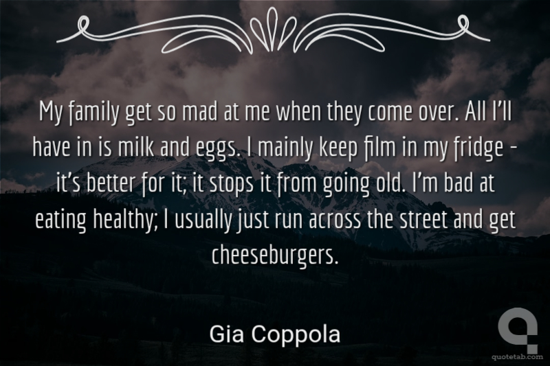 My family get so mad at me when they come over. All I'll have in is milk and eggs. I mainly keep film in my fridge - it's better for it; it stops it from going old. I'm bad at eating healthy; I usually just run across the street and get cheeseburgers.