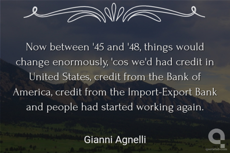 Now between '45 and '48, things would change enormously, 'cos we'd had credit in United States, credit from the Bank of America, credit from the Import-Export Bank and people had started working again.