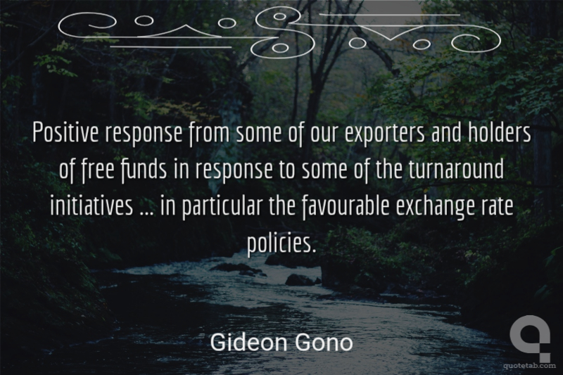 Positive response from some of our exporters and holders of free funds in response to some of the turnaround initiatives ... in particular the favourable exchange rate policies.