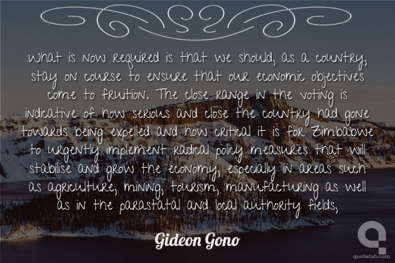 What is now required is that we should, as a country, stay on course to ensure that our economic objectives come to fruition. The close range in the voting is indicative of how serious and close the country had gone towards being expelled and how critical it is for Zimbabwe to urgently implement radical policy measures that will stabilise and grow the economy, especially in areas such as agriculture, mining, tourism, manufacturing as well as in the parastatal and local authority fields,