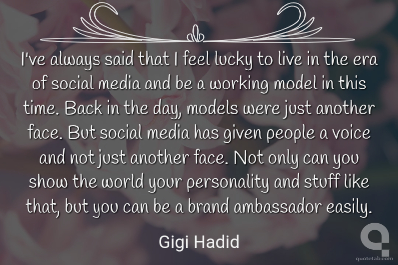 I've always said that I feel lucky to live in the era of social media and be a working model in this time. Back in the day, models were just another face. But social media has given people a voice and not just another face. Not only can you show the world your personality and stuff like that, but you can be a brand ambassador easily.