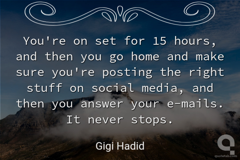 You're on set for 15 hours, and then you go home and make sure you're posting the right stuff on social media, and then you answer your e-mails. It never stops.