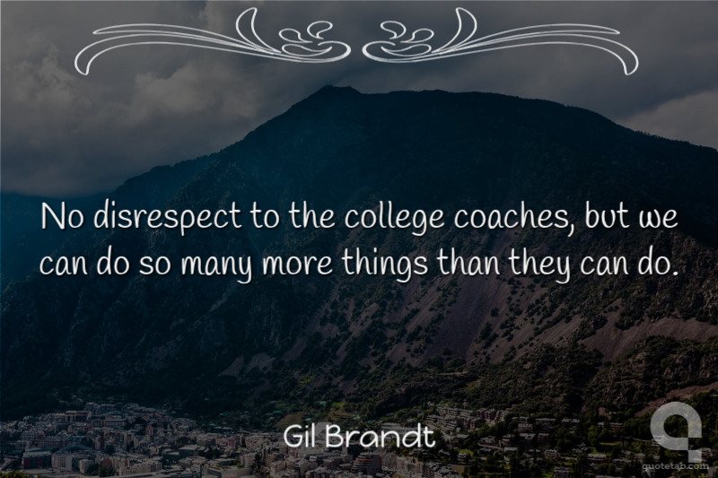 No disrespect to the college coaches, but we can do so many more things than they can do.
